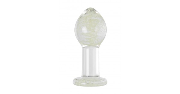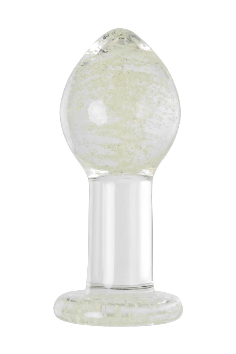 Прозрачная анальная втулка из закаленного стекла содержит флуоресцентные микрочастицы, которые светя..