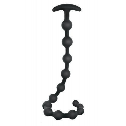 Черная анальная цепочка Ribbed Silicone Anal Beads. Изготовлена из безопасного для тела силикона. Удобная Т-образная рукоятка. Минимальный диаметр - 1,6 см.