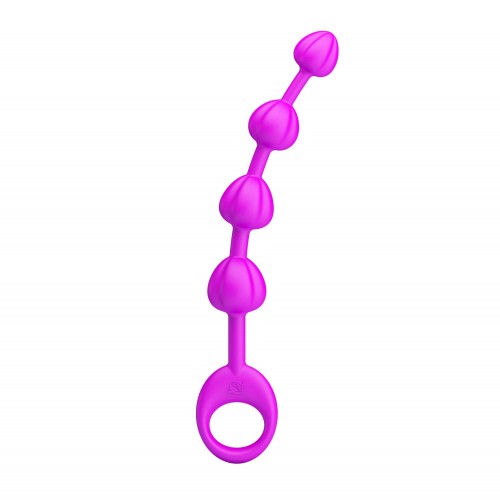 Силиконовая цепочка состоит из бусин разных размеров, что позволяет безболезненно проникать в область ануса. В ее основании находится удобное колечко, с помощью которого можно контролировать глубину проникновения игрушки. Минимальный диаметр звена - 1,7 см.