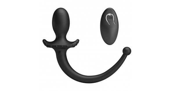 Черная анальная вибропробка с хвостом и пультом ДУ. Имеет 12 режимов вибрации и полностью водонепро..