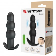 Черный анальный вибромассажёр с 10 режимами возвратно-поступательных движений. Режимы управляются пр..