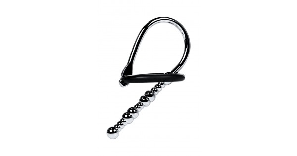 Уретральный плаг в форме бусин различного диаметра для стимуляции уретры. Мягкое кольцо для фиксации..