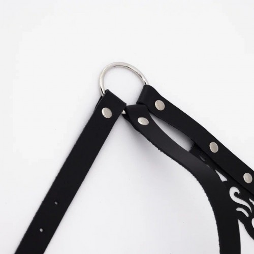 Эта резная портупея изготовлена из черной натуральной кожи и дополнена хромированной фурнитурой высокого качества. Ремешки соединены между собой кольцами и клепками. Благодаря большому диапазону регулировок портупея вели... Читать далее...