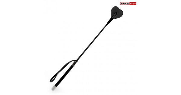 Рукоятка стека из натуральной кожи черного цвета, на конце девайса расположен кожаный шлепок в виде ..