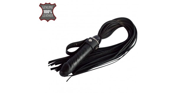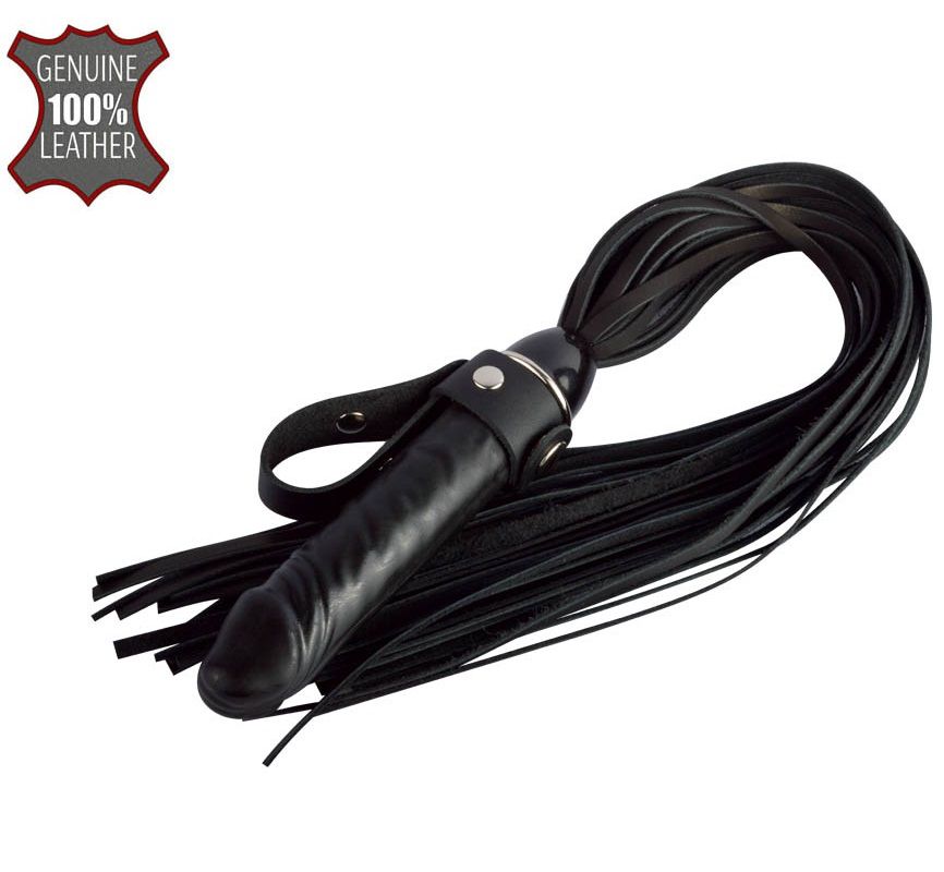Необычный сексуальный атрибут в виде кожаной плети с рукоятью в виде фаллоса из натурального латекса..
