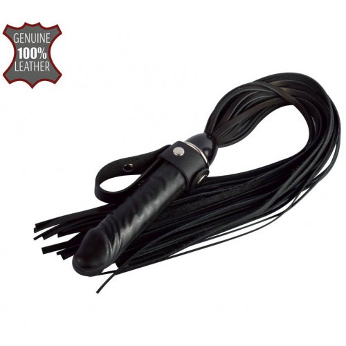 Необычный сексуальный атрибут в виде кожаной плети с рукоятью в виде фаллоса из натурального латекса. Плеть состоит из гладких хвостов натуральной кожи, которые образуют единый пучок, способный качественно разогреть тело партнёра. Рукоять-фаллос изготовлен из натурального латекса и имеет рельефную реалистичную форму. Универсальность конструкции секс-игрушки, значительно разнообразит интимные отношения и придаст им нотку пикантности и чувственности, что сделает её любимым сексуальным атрибутом Вашей пары. Рабочая длина рукояти - 14 см., диаметр - 3,2 см.