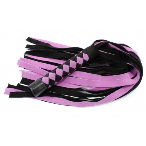 Плеть выполнена из натуральной замши черного и лилового цветов. Рукоятка украшена шахматным плетением. Длинные широкие хвосты делают аксессуар эффектным. Количество хвостов - 24 штуки. Возбуждающая воображение плеть поможет воплотить задуманное в реальность. Длина хвостов - 40 см.