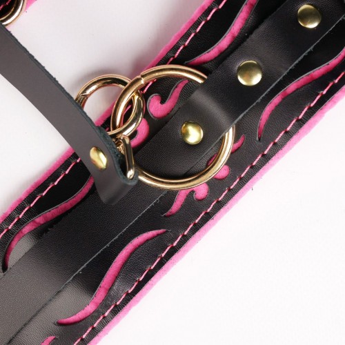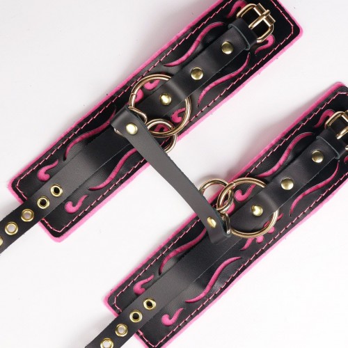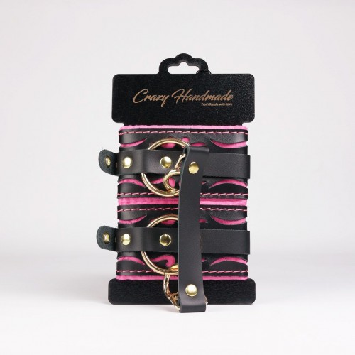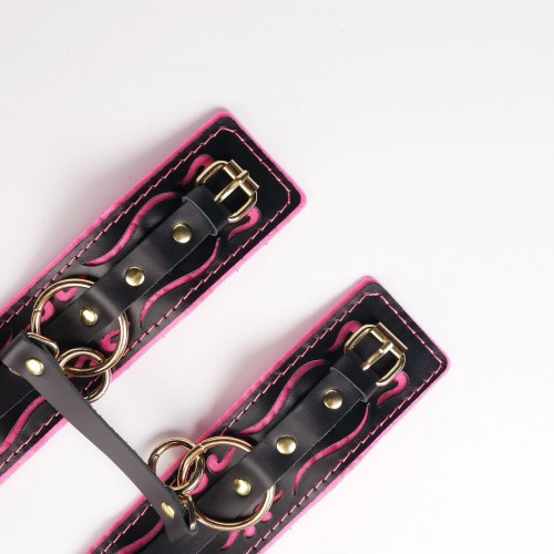 Изделие выполнено из высококачественной натуральной кожи , которая мягко облегает, обеспечивая комфорт даже при длительном использовании. Особое внимание уделено деталям: надежная стальная фурнитура с золотистым покрытием добавляет конструкции прочности и нотку роскоши, а мягкая подкладка розового цвета с контрастной строчкой делает эти оковы по-настоящему уникальными и запоминающимися.