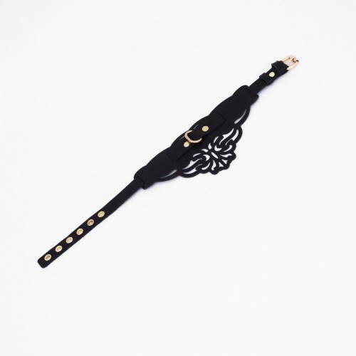 Чокер фигурный из натуральной кожи, украшенный узорами. Каждый элемент дизайна тщательно проработан, чтобы подчеркнуть красоту и элегантность изделия. Золотая фурнитура, сверкающая на фоне черной кожи, добавляет утонченн... Читать далее...