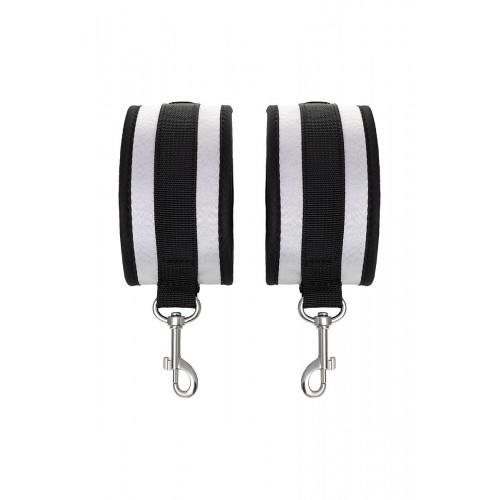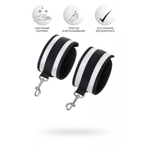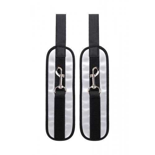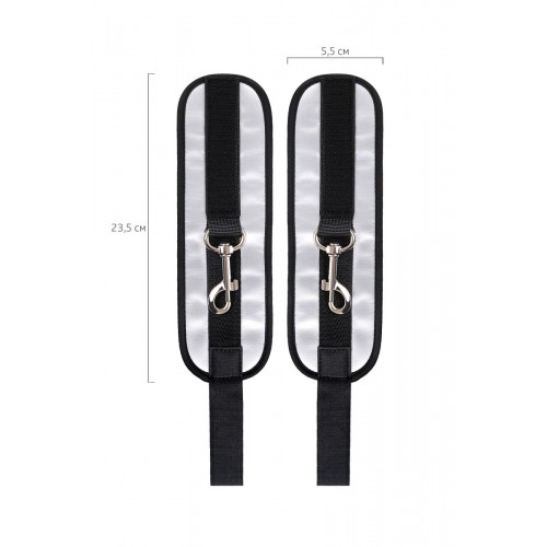 Наручники — классический предмет для игры в подчинение, обязательный для начинающих и опытных поклонников БДСМ. Блестящий во всех смыслах аксессуар для ограничения свободы: сатиновый материал поблескивает, когда на него падает свет. Необычное сочетание серебристого и черного, совсем нехарактерное для классического исполнения аксессуаров в стиле БДСМ, придает изюминку и новизну. Подчиненный с таким аксессуаром выглядит неотразимым. Застежка велкро позволяет зафиксировать руки любого размера. Между собой наручники скрепляются карабинами, практически не оставляя свободы действий. Никакого послабления, только полное подчинение своему Доминанту, где бы ни были зафиксированы руки: впереди или за спиной. Используйте дополнительно цепочку для расширенных возможностей фиксации положения рук. Начните игру в подчинение с этим аксессуаром, и вы поймете, как развивать свою чувственность с помощью ограничения свободы одного из партнеров. Ширина - 5,5 см.