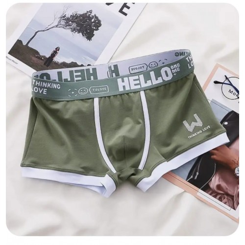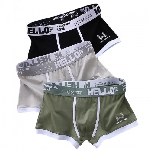 Набор из 3 мужских трусов-боксеров с надписью на резинке: черных. серых и зеленых.