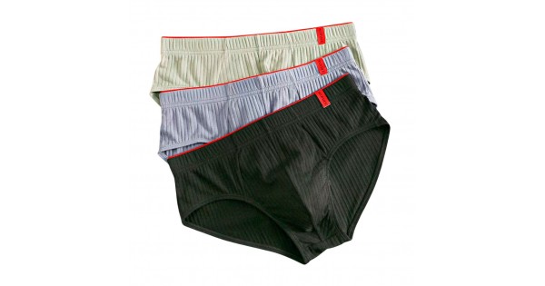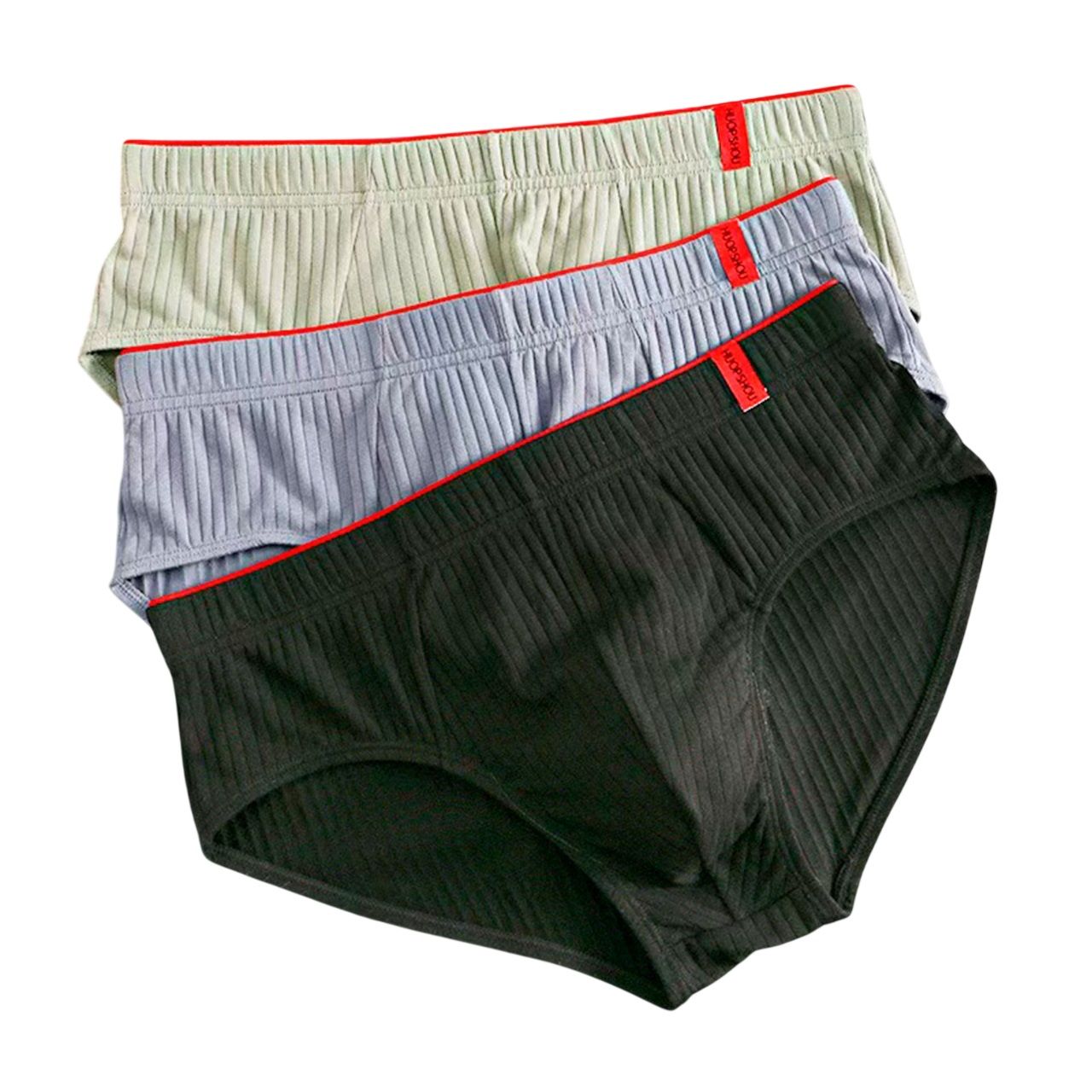 Набор из 3 мужских трусов-брифов в рубчик - зеленых, серых и черных...