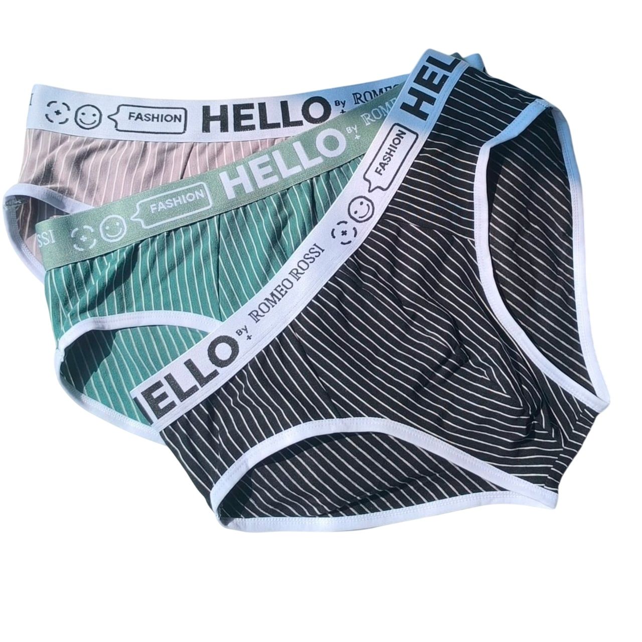 Набор из 3 мужских трусов-брифов в тонкую полоску: зеленых, серых и черных...