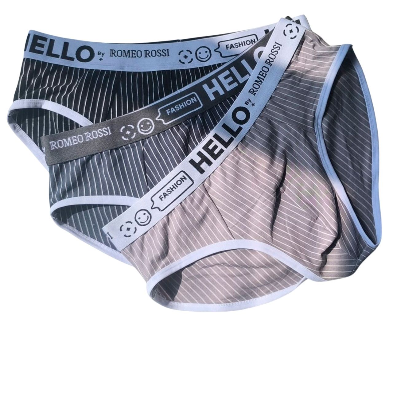 Набор из 3 мужских трусов-брифов в полоску: черных, серых, темно-серых...