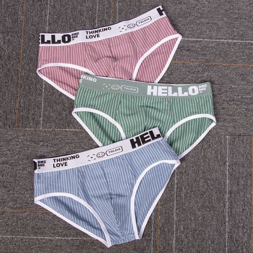 Набор из 3 трусов-брифов в тонкую полоску: голубых, зеленых и розовых.