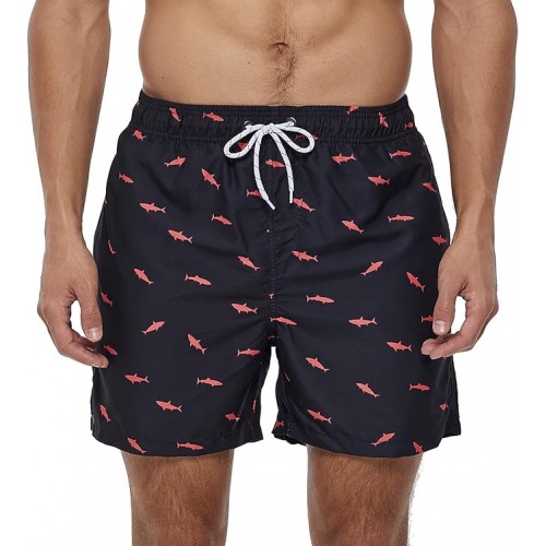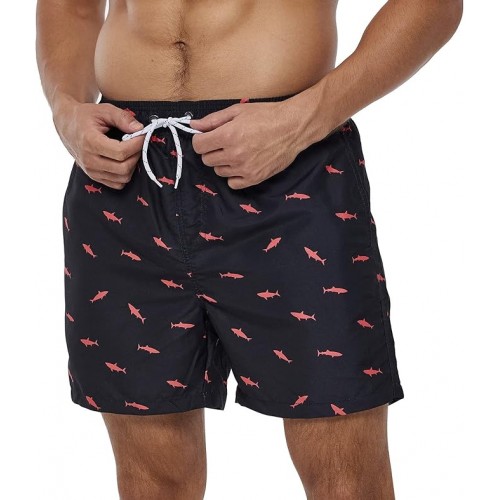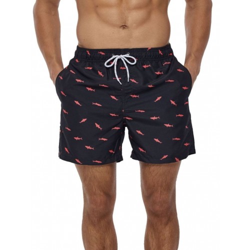 Черные пляжные шорты с акулами. Отлично подходят для пляжного отдыха и плавания. С сеткой внутри. Быстросохнущая ткань.
