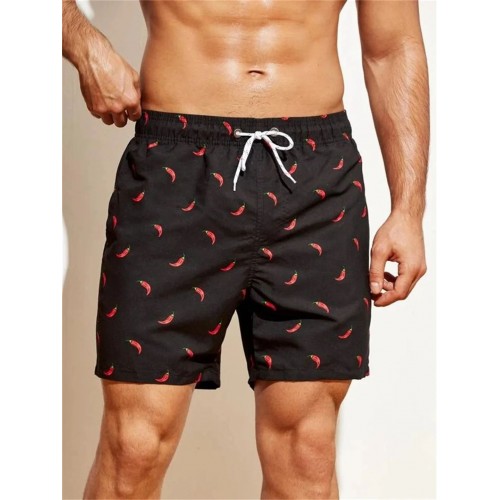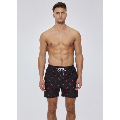 Черные пляжные шорты с перчиками чили. Отлично подходят для пляжного отдыха и плавания. С сеткой внутри. Быстросохнущая ткань.