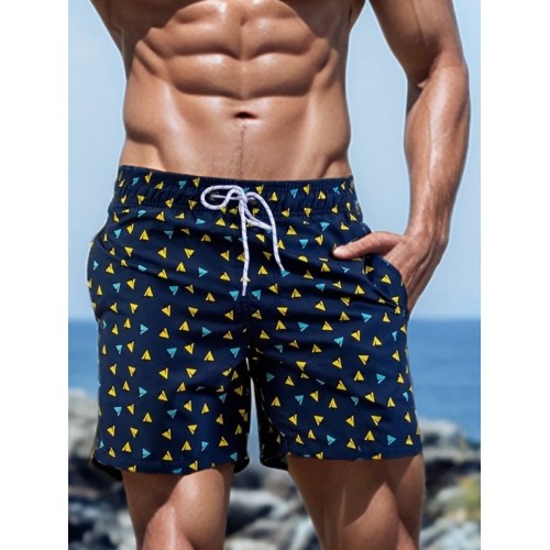 Темно-синие пляжные шорты с принтом и боковыми карманами. Быстросохнущая ткань.