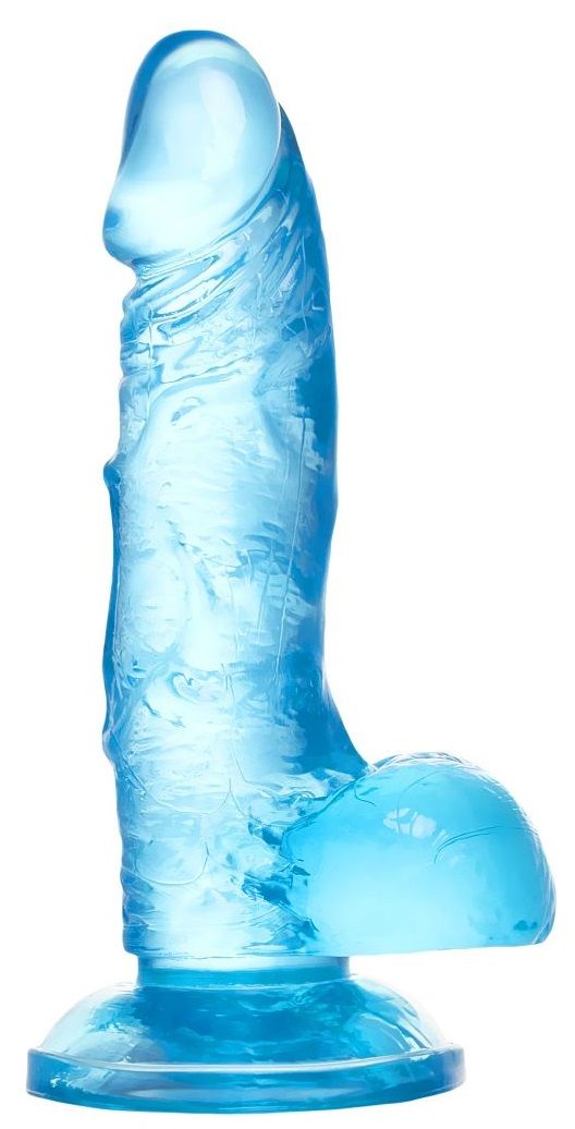Реалистичный гелевый фаллоимитатор в виде эрегированного фаллоса с соблазнительной мошонкой с удовол..