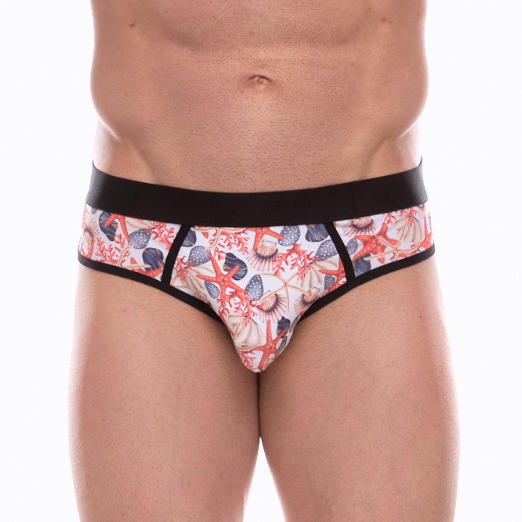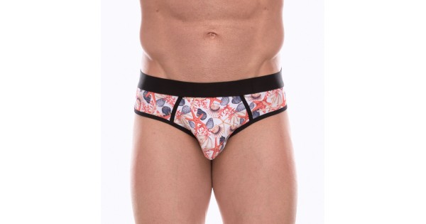 Белые трусы-джоки с принтом в виде цветных ракушек...
