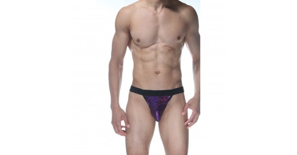 Трусы-стринги для мужчин, из гладкой блестящей тянущейся ткани. Сзади Т-образный узор-цепочка из мет..