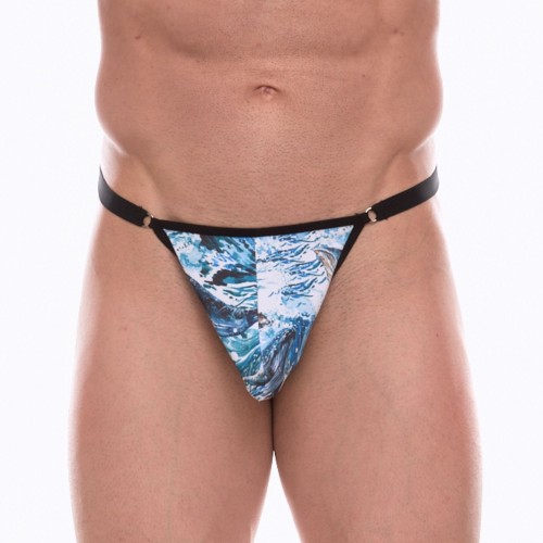 Мужские трусы-тонги с принтом в виде волн и китов.