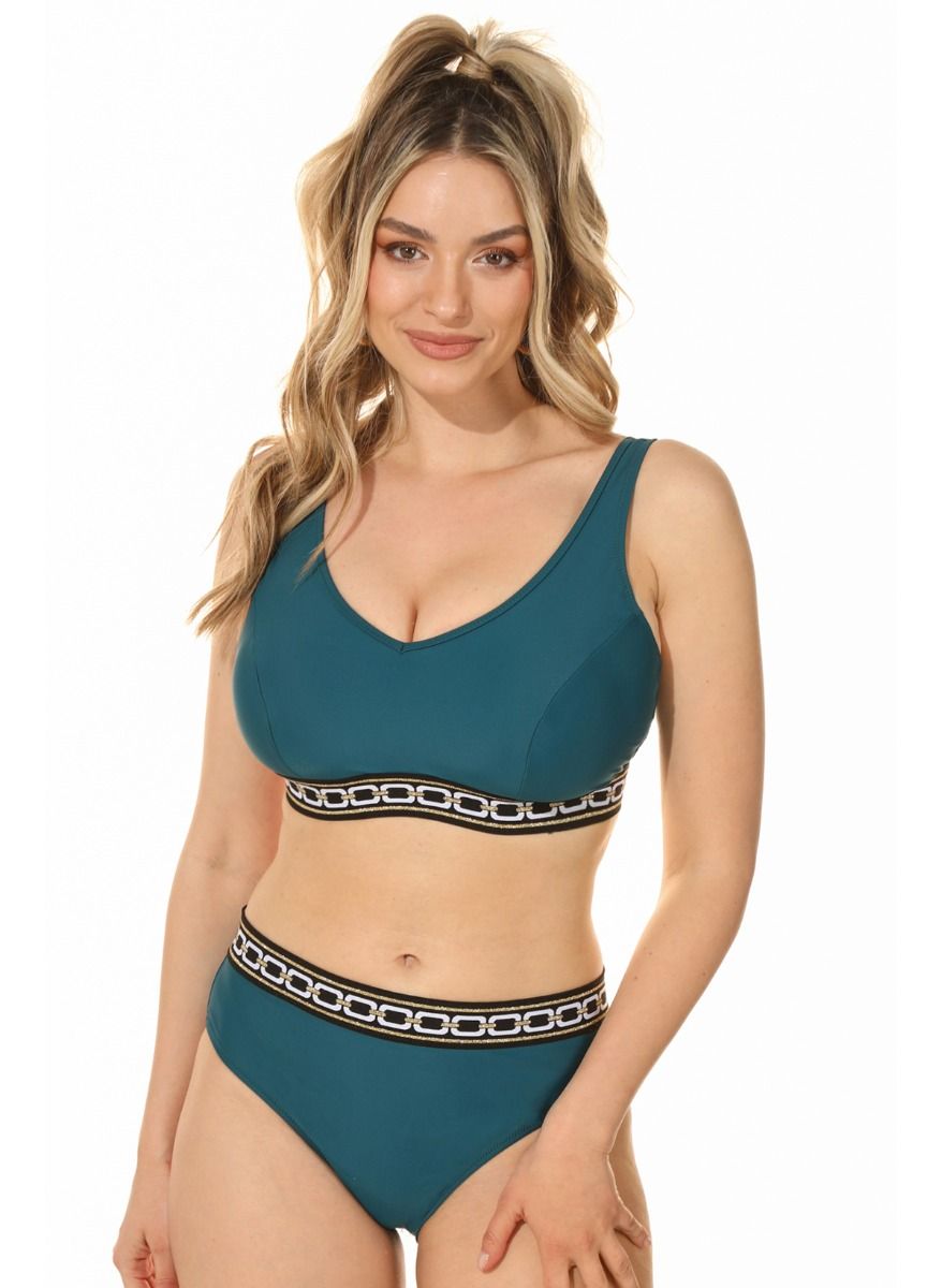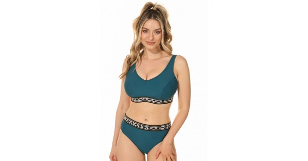 Раздельный купальник: бюстье с формованными чашками и трусики-слип с высокой линией талии. Несъемные..