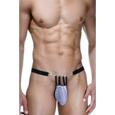 Бело-черные мужские трусы-стринги. Широкий пояс-резинка...