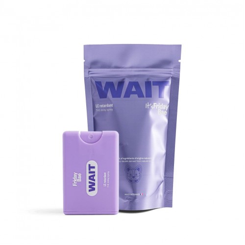 Friday Bae WAIT пролонгирующий спрей призван продлить удовольствие и отложить финал. Применение: при первых использованиях мы рекомендуем применять продукт за 5?10 минут до проникновения. Распылите один или два раза на головку члена с расстояния около 20 см. Оставьте средство впитываться и, если хотите остаться инкогнито, вымойте руки и пенис чистой водой.Средство рассчитано примерно на 20 сексуальных контактов. Количество распылений зависит от Вашей чувствительности.Состав: Вода, пропиленгликоль, спирт, экстракт Acmella Oleracea, ментол, отдушка, этил ментан карбоксамид, масло гвоздичного дерева, эвгенол.Меры предосторожности: • Избегайте попадания в глаза.• Не наносите на поврежденную или раздраженную кожу.• В случае возникновения кожной реакции прекратить использование и обратиться к врачу.Условия хранения: хранить в темном месте при комнатной температуре. Срок годности после вскрытия 12 месяцев.Объем 10 мл.