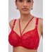 Бюстгальтер Chiara M выполнен в красном цвете с мягкими чашечками на косточках, чашки шитые из кружева, продублированы сеткой в тон, декорированы тесьмой. Спинка из стабилизирующей сетки. Бретельки регулируются по длине, не отстёгиваются. В зоне декольте дополнительные съемные тонкие бретели, регулируются по длине, крепятся между чашками и на спинке, при желании их можно перекрещивать на спине. На спине застёжка на удлинитель, количество крючков в ряду застёжки увеличивается пропорционально размеру бюстгальтера, фурнитура металлическая цвета желтого золота.