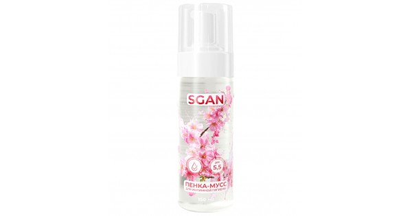 Пенка-мусс для интимной гигиены SGAN с пребиотическим эффектом. Ультрамягкая формула с pH 3.8–4.5 дл..