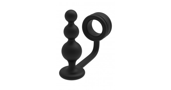 Черное эрекционное кольцо с анальной елочкой Cockring With Beaded Anal Plug...