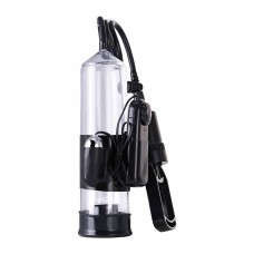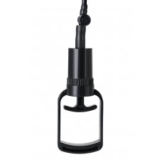 Мужская вакуумная помпа черного цвета с колбой из пластика. На конце колбы уплотнитель-насадка из не..