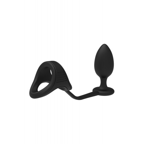 Черное эрекционное кольцо с анальной пробкой Cockstrap With Anal Plug.