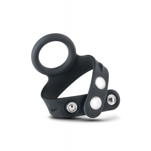 Черное эрекционное кольцо с подхватом мошонки на кнопках VS6.