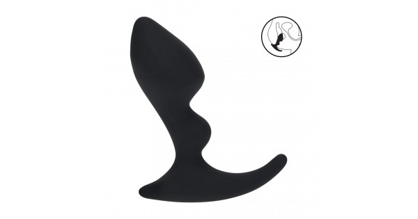 Черная анальная пробка для массажа простаты Double Ripple Silicone Prostate Massager. Рабочая длина ..