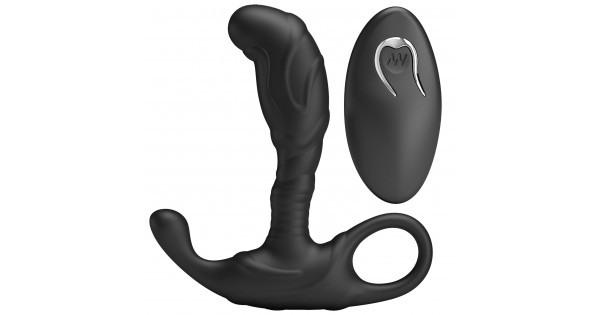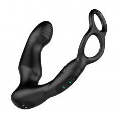 Черный вибростимулятор простаты с фиксацией кольцами. 12 режимов вибрации. Пульт дистанционного упра..