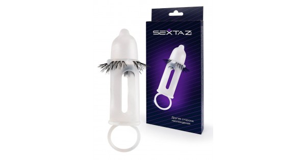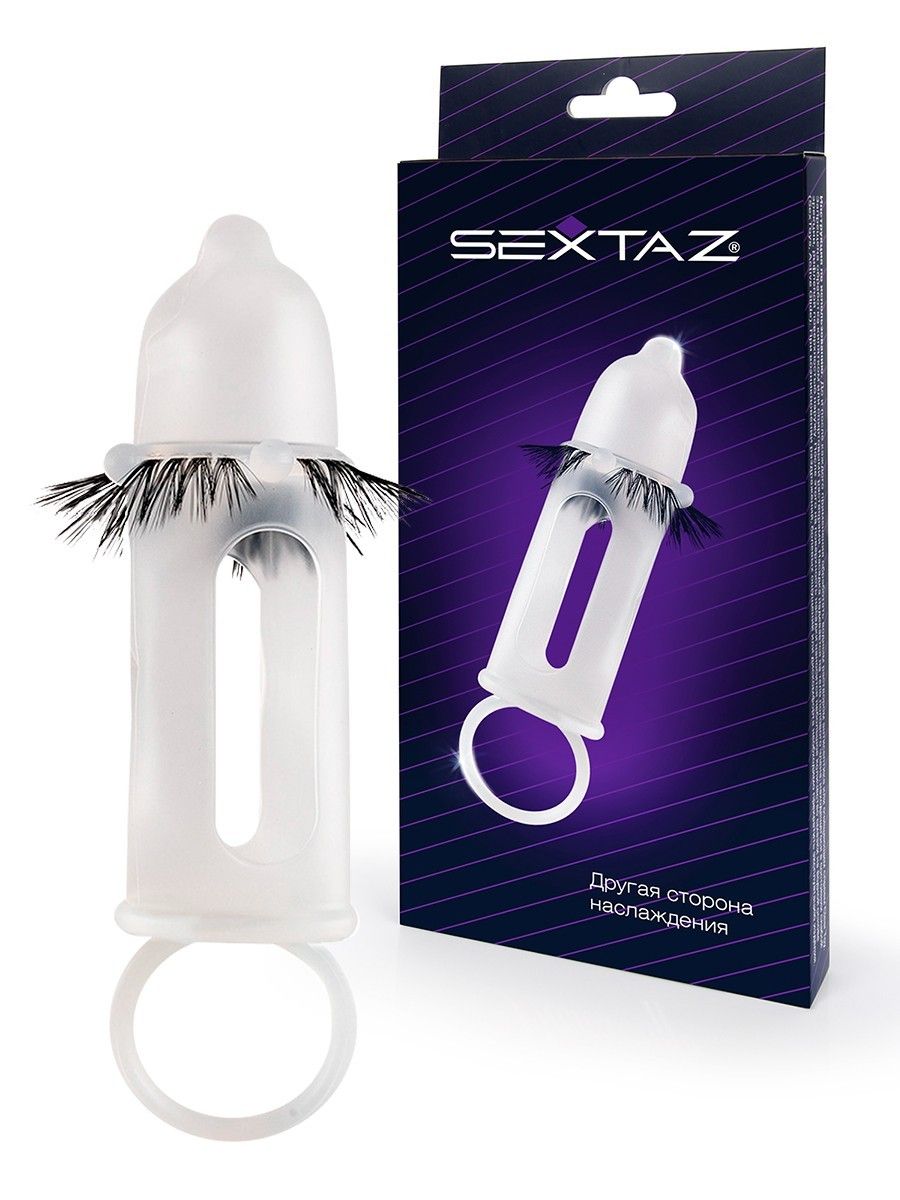 Оригинальная насадка на пенис с эрекционным кольцом для мошонки, возбуждающими «ресничками» и выпукл..