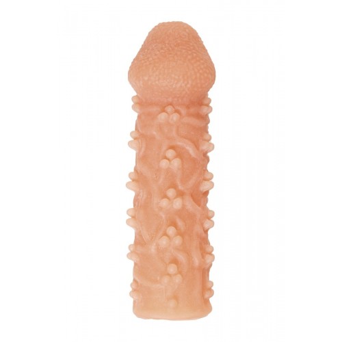 Увеличивающая насадка с фантазийным рельефом в виде пучков шишечек от KOKOS открывает новые возможности для взаимного удовольствия и воплощает фантазии о внушительном размере пениса.