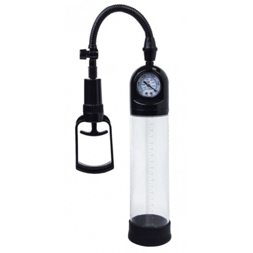Чёрная вакуумная помпа A-toys с манометром и прозрачной колбой.