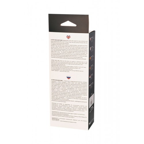 A-Toys Vacuum pump — серия помп, созданная для мужчин, которые стремятся к новым победам и точно знают чего хотя. Регулярное применение помп Atoys способствует увеличению размеров полового члена и усиливает эрекцию. Высокое качество материалов, используемых при производстве помпы, сделают применение изделия приятным и безопасным. Помпа оснащена мощным насосом, а также механизмом вибрации, которое крепится к помпе с помощью эластичного материала с кармашком для виброяичка и управляется выносным пультом. В комплекте: вакуумная помпа с вибропулей, 3 эрекционных кольца.