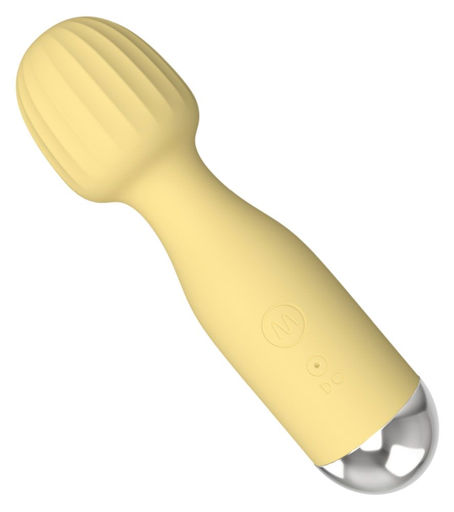 Желтый мини-вибратор с мягкой текстурой. С 10 различными вибрационными режимами и с кабелем зарядки ..