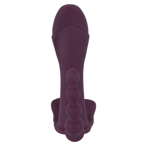 Изготовленный из тончайшего силикона шелковистый стержень с пухлой головкой легко вводится. Мягкая ворсистая подушечка ласкает клитор. Гибкий стимулятор в виде пули разного диаметра ублажает анальную зону. Вибратор в трусиках гибко подстраивается под тело и повторяет каждое движение. Это означает, что тройная вибрация всегда ощущается интенсивно - как внутри, так и снаружи. Тройное удовольствие, которое можно получить везде! Длина вагинального отростка - 10 см, диаметр - 3,2 см.