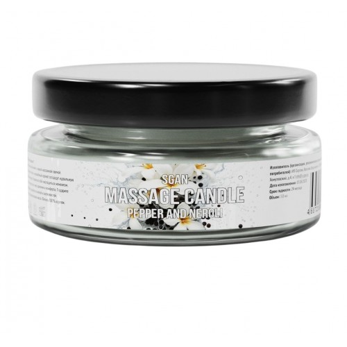 Массажная свеча с ароматом переца и нероли SGAN в стеклянной банке — это натуральное средство для расслабления, ухода за кожей и создания романтической атмосферы. Свеча изготовлена из 100% кокосового воска с добавлением ароматического масла перца и нероли и хлопкового фитиля, что обеспечивает безопасное и чистое горение. При нагревании свеча превращается в тёплое массажное масло, которое глубоко увлажняет, питает и смягчает кожу, делая её шелковистой и ухоженной. Приятный аромат перца и нероли наполняет комнату уютом и гармонией.