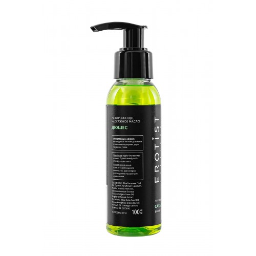 Разогревающее масло со вкусом «Дюшес» из линейки Erotist Caramel Club сочетает в себе сладкий, узнаваемый аромат любимого лимонада и мягкое тепло прикосновений. Масло создано для того, чтобы превратить обычный массаж в атмосферный ритуал — аромат груши создаёт романтическое настроение, а разогревающий эффект, который активируется дыханием, усиливает чувственность. Формула на основе масел оливы, сладкого миндаля, макадамии и зародышей пшеницы глубоко питает и увлажняет кожу, делая её гладкой и шелковистой. Экстракты имбиря и стручкового перца активируют лёгкое согревающее действие, усиливая чувствительность. Масло мяты и иланг-иланга дополняют композицию, тонизируя и создавая расслабляющий ароматический фон.