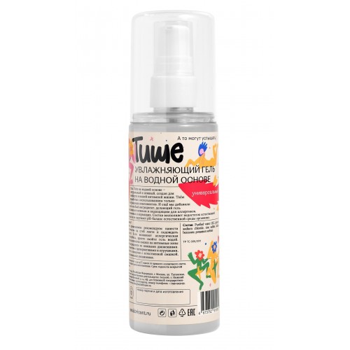 Гель Tishe на водной основе - натуральный и нежный, создан для комфорта в вашей интимной жизни. Tishe разработан с использованием только натуральных компонентов. Гель гипоаллергенный и подходит для беременных и кормящих.... Читать далее...