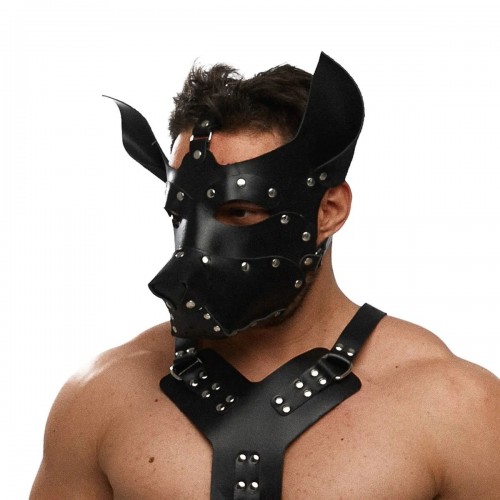 [description] => Черный кляп-шар со сбруей на голову из кожи...