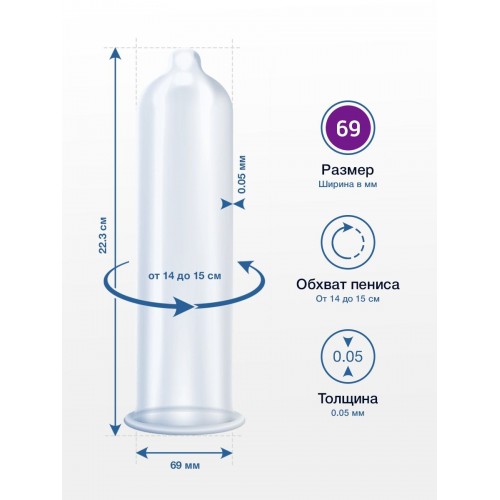 Идеальный размер презерватива? Идеальный размер, это размер, в котором комфортно именно тебе. Стандартные презервативы, которые «на всех один размер», некоторым людям бывают неудобны - они сидят или слишком туго, или слишком широко. Май Сайз - отличные немецкие латексные презервативы, которые предлагают целую линейку размеров, в которой есть презервативы, предназначенные для членов разных окружностей. Просто измерь один раз окружность своего бойца в эрегированном состоянии, и ты будешь знать, какой размер латексных презервативов My Size подходит именно тебе. Толщина - 0,05 мм.