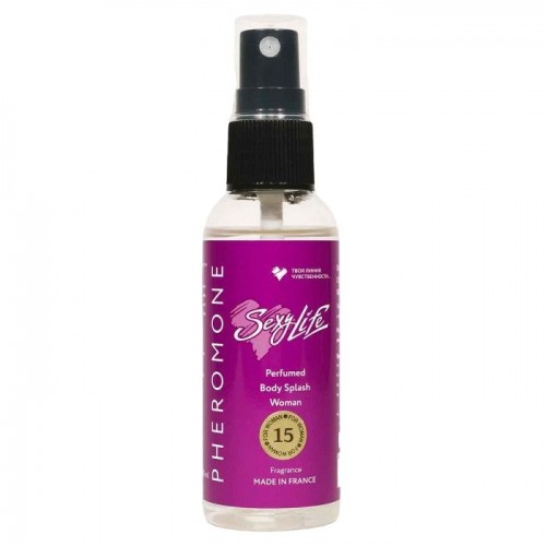 Парфюмированный спрей для тела Sexy Life с феромонами и афродизиаками для женщин. Уникальное сочетание манящего парфюма с феромонами окутает ваше тело волшебной аурой нежного и чувственного аромата. Семейство ароматов: цветочные, древесно-мускусные. Верхние ноты: ямайский перец и красная фрезия. Средние ноты: цветок белого гелиотропа. жасмин из Ирана, болгарская роза, амбра. Базовые ноты: гималайский кедр, замша, сандаловое дерево Майсур.