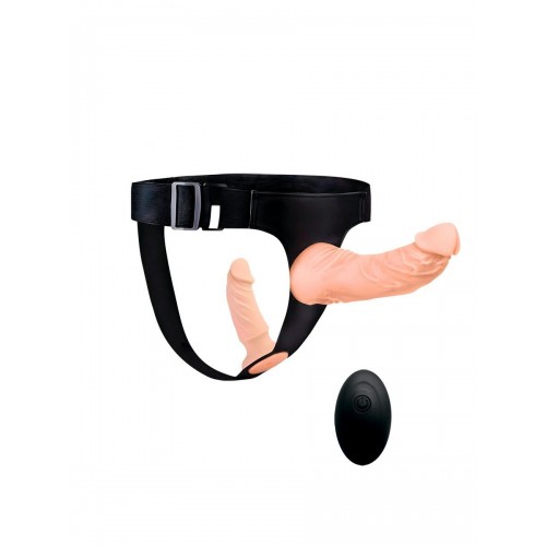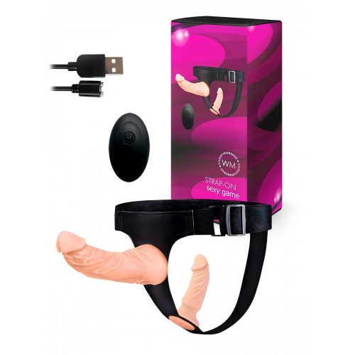 Оригинальная секс-игрушка подарит разнообразные эротические удовольствия обоим партнёрам. Режимы вибрации повысят уровень удовольствия и доведут до пика наслаждения. В комплект входят: два съёмных реалистичных вибратора, удобные трусики с эластичными ремнями, два съёмных коннектора, дистанционный пульт управления, USB-провод.